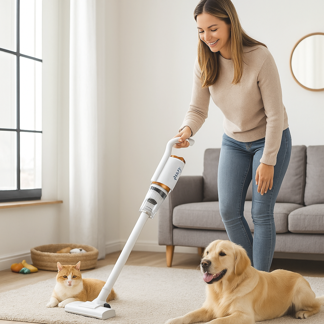 Su potente succión de 17 kPa elimina fácilmente pelos, migas y polvo fino. Perfecta para hogares con mascotas y poco tiempo.