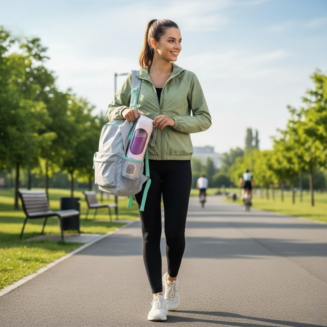 Ideal para caminatas, la oficina o el gym. Una licuadora portátil que cabe en tu mochila y te acompaña a cualquier lugar.